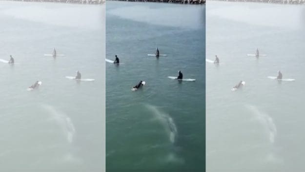 Watch: Surfers Don’t Notice Giant Whale Swim Under Them