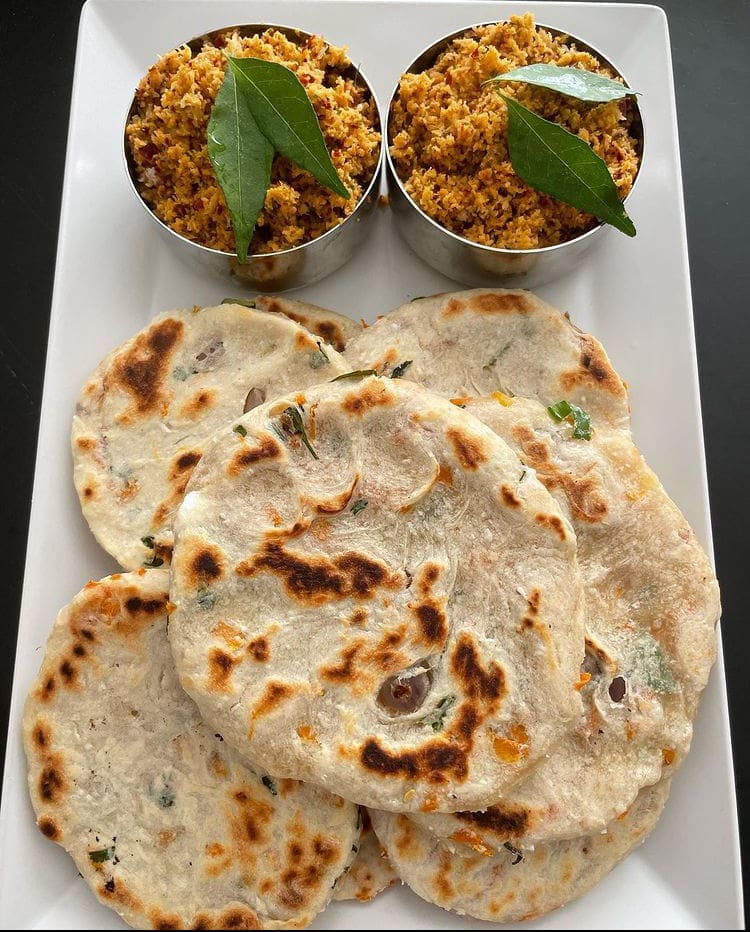 Locals know it as Pol Roti, and it is made with wheat flour and grated coconut. Similar to Roast Paan, Coconut Roti can be eaten with dhal curry or pol sambol. But in most restaurants, it is served with lunu miris.Â