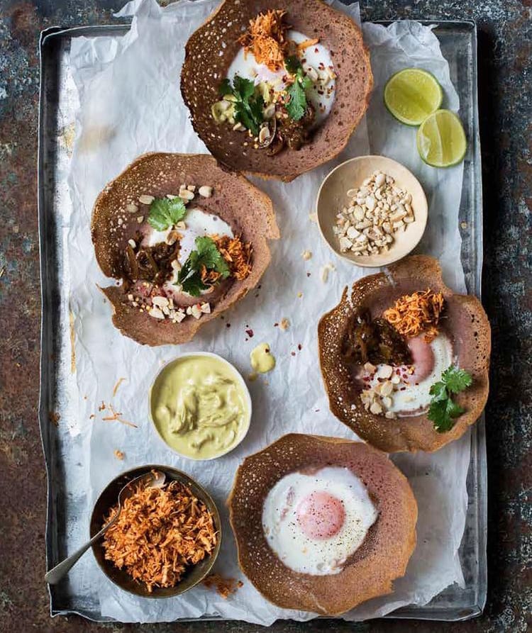 Hoppers have a soft inner core, crispy ends, and are shaped like a small bowl. They are usually found as a dinner meal but sometimes in high-end restaurants, you might find them for breakfast too.Â