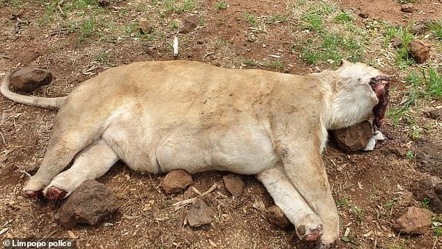 On Tuesday night a gang of poachers threw the poisoned chickens over the electrified fences and waited for the predators to eat them. After suffering for around 30 minutes all five lions were dead.