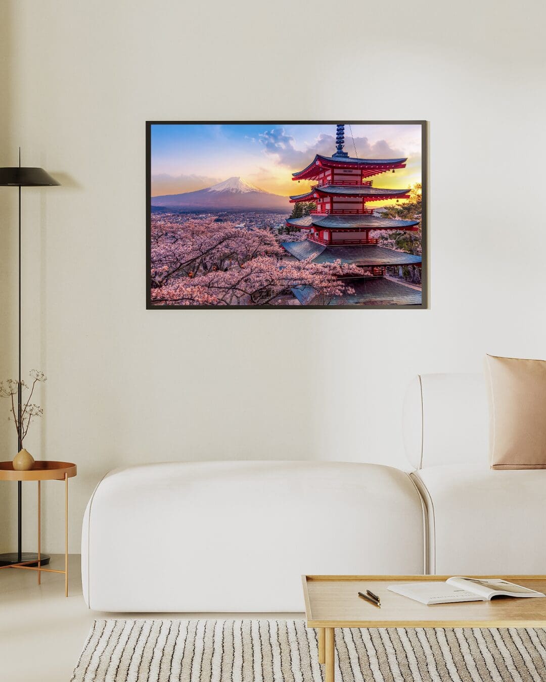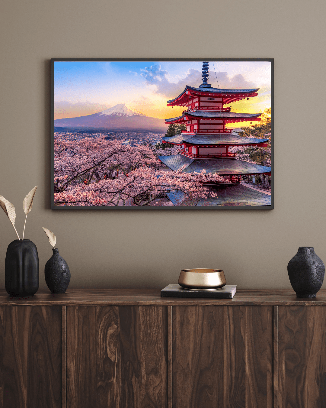 As cherry blossoms burst into bloom across Japan, the iconic Chureito Pagoda stands serene beneath the watchful gaze of Mount Fuji.